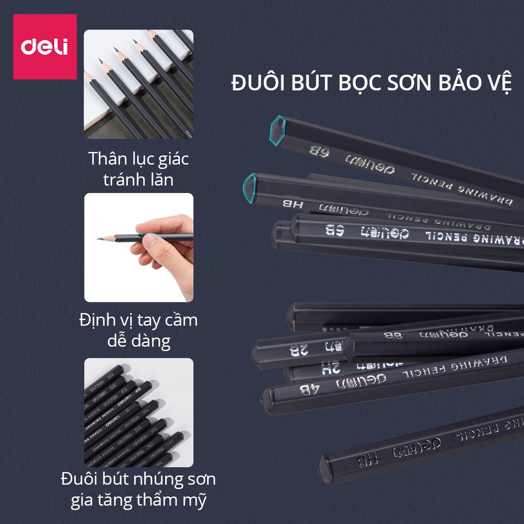 Bút chì phác thảo phiên bản cao cấp Deli - 2H, HB, 2B, 4B, 6B, 8B - Dành cho mỹ thuật chuyên nghiệp độ đậm chuẩn